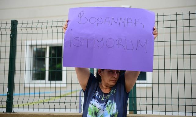 Adana'da, şiddet gördüğünü iddia ettiği eşi Cerrah K.'den (51) mahkemelerin ret kararları yüzünden boşanamayan Meryem K. (45), elinde taşıdığı 'Boşanmak istiyorum' yazılı dövizle Adana Adliyesi önünde eylem yaptı.