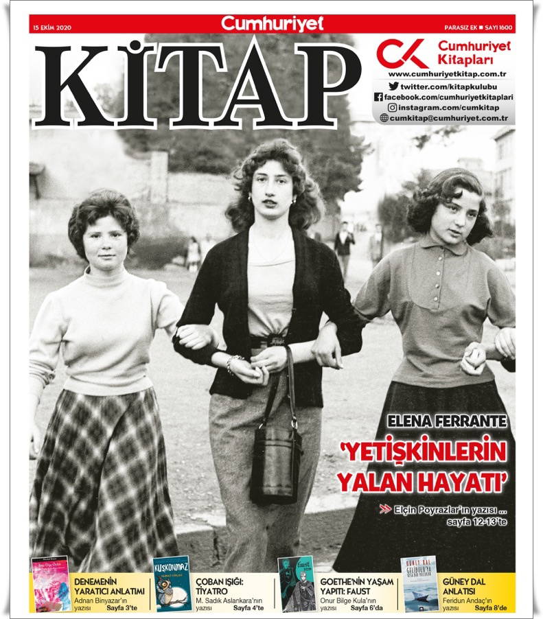 - Cumhuriyet Kitap Dergi’mizin 1600’üncü sayısıyla BUGÜN, kitapseverlerin karşısındayız. Bu özel sayımızın kapağında; İtalyan, Napolili ve kadın bir yazar olduğu dışında pek de bir bilgi sahibi olmadığımız, yapıtlarını müstear isimle kaleme alan ve bu gizliliği küresel ününe karşın hala devam ettiren Elena Ferrante yer alıyor. Napoli’nin bir kenar mahallesinde iki kız çocuğunun genç kızlıktan kadınlığa adım atışlarını, okuma aşklarını, eril dünyada ayakta kalma çabalarını, ev içi şiddeti, mutsuz kadınları öykülerine konu ettiği ‘Napoli Romanları’yla sayısız okurun saygısını kazanan Ferrante, son romanı Yetişkinlerin Yalan Hayatı’nda da, okuru Napoli’nin kıvrak, sokak, dil ve bağlarına, ‘kendine saadet yaratmayı beceremeyen annelere’, baba-kız ilişkilerine, cinselliğin keşfine, kırılgan dostluklara taşıyor.