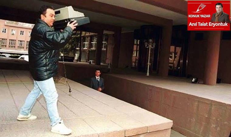 Ülke ekonomisinin gidişatını sıra dışı bir eylemle protesto eden bir vatandaş dönemin başbakanı Bülent Ecevit’e yazar kasa fırlatıyor.