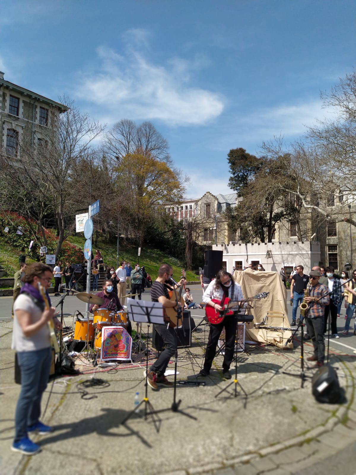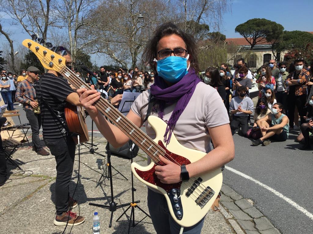 Özcan: Aslında muhalefetin tamamiyle yok edilmeye çalışıldığı bir ortamdayız bilindiği üzere. Böyle bir ortamda, haklı olduğumuz aşikar olan direnişimize gelecek her türlü destek çok önemli. Sadece Boğaziçi direnişi de değil, haklı olan her direniş bize nefes aldırıyor bu koşullarda. Bunun için de, kim, elinden ne geliyorsa o şekilde bu direnişe destek oluyor. Hocalar arasında bir sürü komisyon kuruldu mesela. Medya komisyonu, hukuk komisyonu, Cuma bültenlerini yazan Bülten Komisyonu vs. Kim, hangi komisyonda iş yapabileceğini düşünüyorsa o komisyonda gönüllü olarak yer alıyor. Bizim müzik grubunu da bu anlayışın bir örneği olarak görüyorum. ‘Normal şartlar’ altında olsak belki bu grup kurulamazdı. Belki klasik müzik disiplininden gelen Feyzi hoca böyle bir gruba katılmak istemezdi, belki Tuna hoca Caz müziği daha çok sevdiği için bu parçaları çalmak istemeyebilirdi, belki Alaz hoca daha çok ‘soft rock’ çalalım isterdi vs. Yani böyle olduğu için değil de örnek vermek için söylüyorum. Normalde bir müzik grubu nasıl kurulur? Benzer müzikleri dinleyen, seven üyeler bir araya gelir, grubu kurar. Bizde öyle olmadı. Vurmalı çalgı mı lazım, ben çalarım dedi Tolga Hoca. Tuşlu çalgılara ben gelirim dedi Feyzi Hoca. Herkes böyle yani. Bu ‘kutsal’ bir görev çünkü. Ama bu direniş bize de bireysel olarak çok şey kattı. Birbirimizden çok şey öğrendik. Belki yıllarca koridorda karşılaşıp yanından basit bir selam vererek geçtiğimiz, hatta belki hiç tanımadığımız arkadaşlarımızla beraber hiç ummadığımız işlere kalkıştık. Başardıkça da birbirimizle gurur duyduk. Umarım duymaya devam edeceğiz.