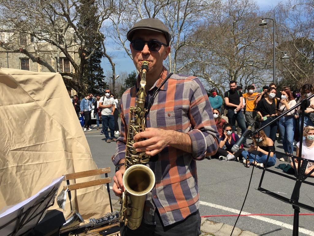 Tuna: Öğrencilerin talebi ve hocalar forumunda Esra ve Zeynep hocaların teşvik etmesiyle grup kurma fikri doğdu. Benim gruba girişim ise ilginç. Saksafon biliyorsunuz çok gürültülü bir enstrüman ve kısma şansınız da yok! Ben Covid öncesi sık sık hafta sonları ofisimde çalışmaya gidiyordum ve bu çalışmalarımdan birinde, bina komşumuz psikoloji bölümünden Esra ofisindeymiş ve beni dinlemiş. Geldi, çok beğendiğini söyledi, sohbet ettik müzik üzerine epey. Sonra da beni gruba önerdi! Ben de şok oldum, ama hayatımın da fırsatını yakaladım!
