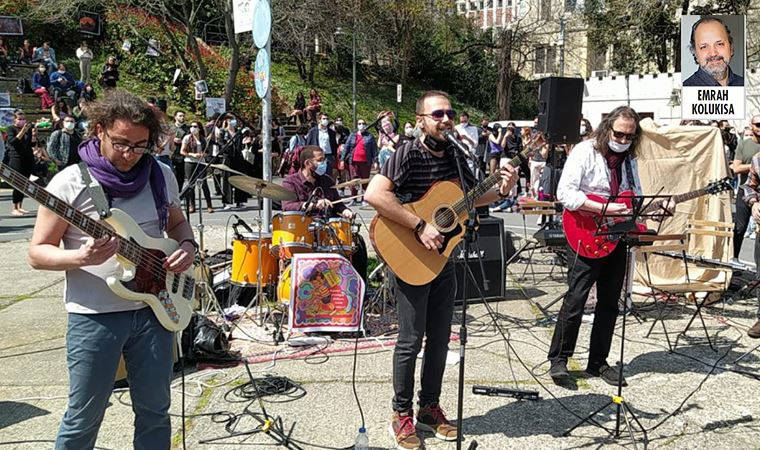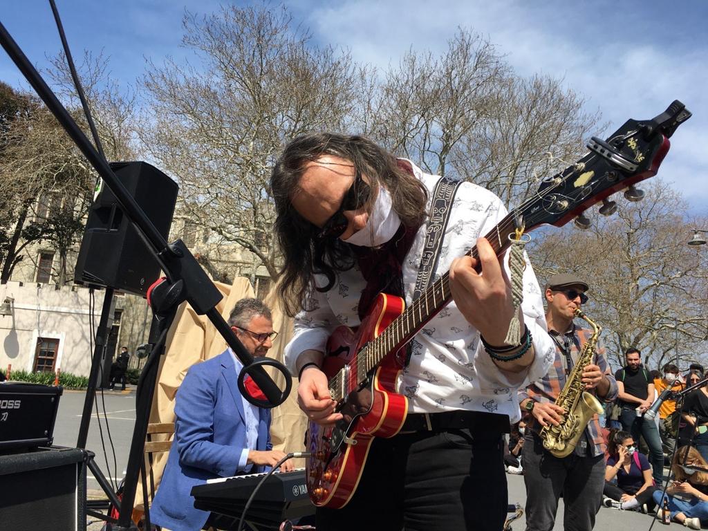 Taylan: Konser gerçekten inanılmazdı. Sahneye çıkışımızı hiç unutmayacağım. Küçük bir teknik mesele yüzünden biraz geç başlamak zorunda kaldık. Biz de bu esnada arkada steplerde bekliyorduk. Meydan kalabalıktı ancak kimsenin konserle ilgileniyormuş gibi bir hali yoktu. Açıkçası kimse dinlemeyecek galiba diye kendi kendime sormaya başlamıştım. Sonra buyrun gelebilirsiniz dediklerinde biz sahneye doğru yürürken, meydanda bulunan yüzlerce insan sahnenin önüne koştu ve hepimiz büyük bir coşku yaşadık. O gün orada olan meslektaşlarımız ve öğrencilerimiz harikulade bir fiziksel ve duygusal bir araya geliş yaşadık. Aslında konserde grubun yaşayıp yaşamayacağı da biraz belli olacaktı. Hem bizim kendi performansımızı görmemiz hem de alacağımız dönüşler açısından. Konserde gördük ki hem bizim aramızda güzel bir uyum var, hem de müthiş bir sitayişle karşılandık. Biz de öyle büyük bir keyif aldık ki, devam ediyor muyuz diye konuşmamıza bile gerek kalmadı. “Şimdi ne yapıyoruz?” diye konuşmaya başladık.