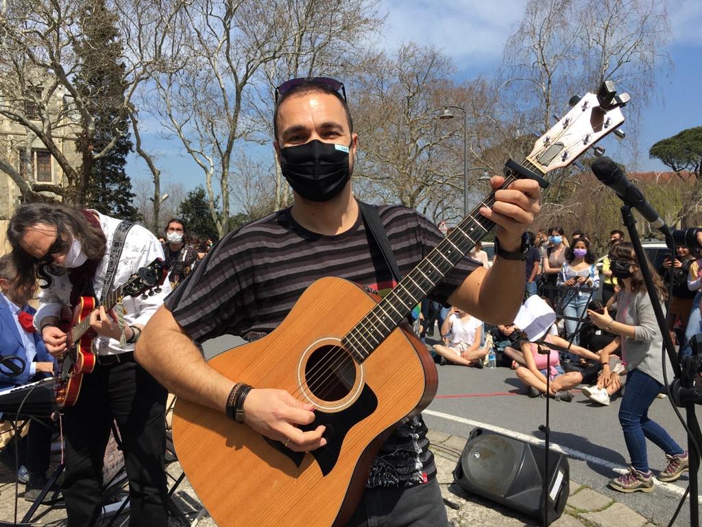 Özcan: Aslında direnişteki diğer hocalarımız gibi biz de halihazırda devam eden sorumluluklarımızı aksatmadan ekstra zaman ve çaba harcayarak bu direnişe katkıda bulunmaya çalışıyoruz. Müzik grubumuzdaki çalışmaları da buna dahil ediyorum. 1 Mayıs marşı videomuzun kurgusu için mesela o gece sabahlamak durumundaydım, çünkü gün içinde başka sorumluluklarım vardı ve kurguya ancak gece başlayabilmiştim. Böyle bir tempo içerisindeyken, hele bir de pandemi koşullarında buluşup düzenli prova yapabilme imkanımız hiç yok maalesef.