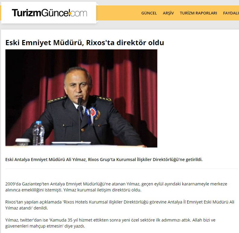 DÖNEMİN EMNİYET MÜDÜRÜ OLAYDAN BİR YIL SONRA RİXOS YÖNETİCİSİ OLDU