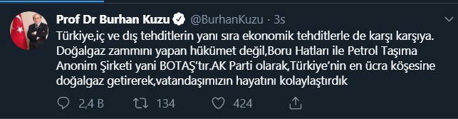 İşte Burhan Kuzu'nun tweeti;