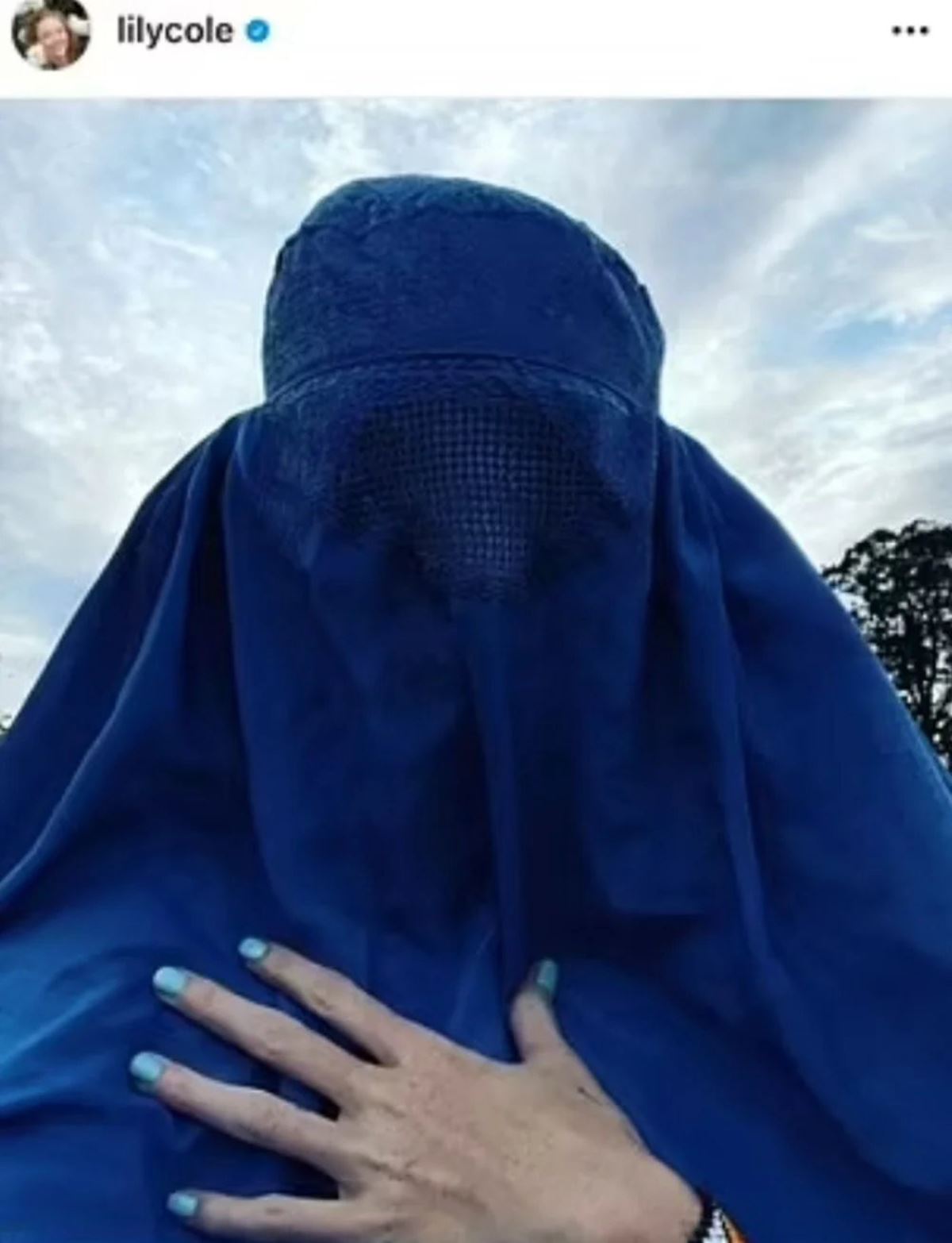 Lily Cole mavi bir burka giydiği fotoğrafında “Her düzeyde çeşitliliği kucaklayalım, biyo-çeşitlilik, kültürel çeşitlilik, düşünce çeşitliliği, seslerin çeşitliliği, fikirlerin çeşitliliği...” diye yazmıştı.