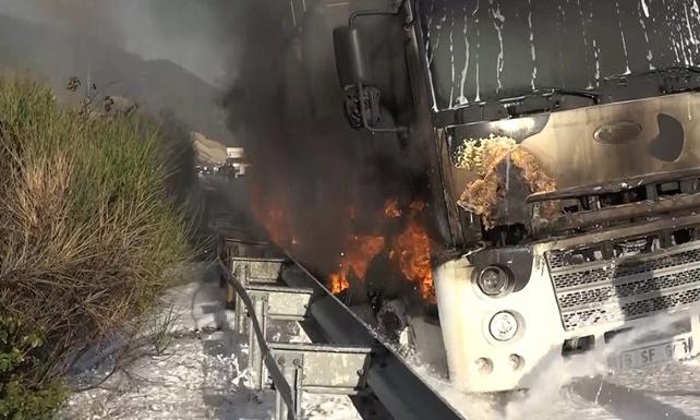 İtfaiye ekipleri de araçta ve ağaçlık alandaki yangını büyümeden söndürdü. Süt tankeri kullanılmaz hale geldi.