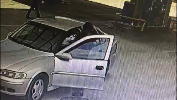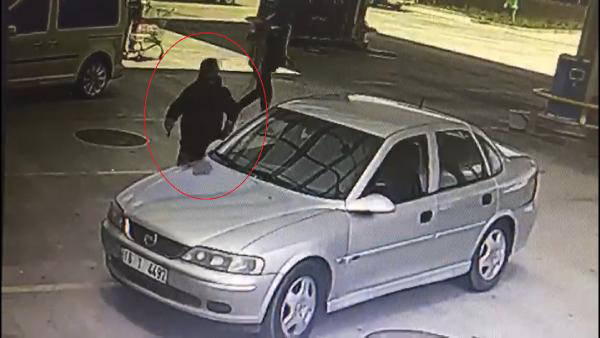Kimliği belirsiz kişi ise ellerindeki poşetler ile ön yolcu koltuğundan sürücü koltuğuna geçip, otomobille kaçtı. Bu anlar iş yerinin güvenlik kamerasınca saniye saniye kaydedildi.