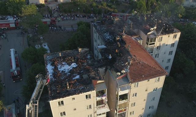 Bursa'nın Nilüfer ilçesinde üç apartmanda çıkan yangın korku dolu anlar yaşattı. Alev alev yanan binaların küle dönmüş hali drone ile havadan görüntülendi.