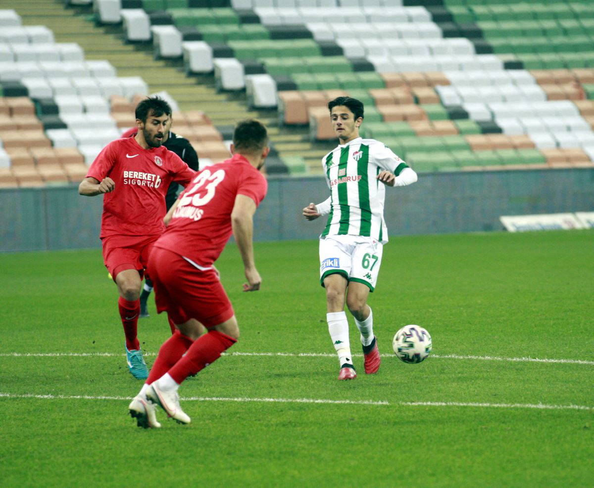 Rakip kalede baskısını artırmak isteyen Bursaspor, 63’üncü dakikada gole yaklaştı. Ceza sahası içerisinde Ali Akman’ın sol çaprazdan yakın direğe yaptığı vuruşta kaleci Ahmet Eyüp topa sahip oldu.