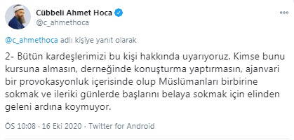 ÜNLÜ CEMAATLERİ UYARMIŞTI