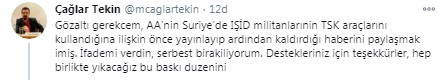 Çağlar Tekin, Twitter hesabından şöyle açıklama yaptı: