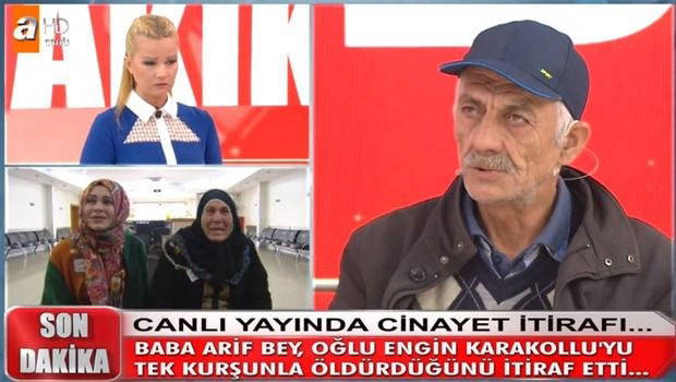 Hakkındaki iddiaları yanıtlamak için stüdyoya gelen baba Arif Karakollu, oğlu Engin Karakollu'yu öldürdüğünü canlı yayında itiraf etti.