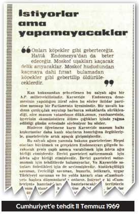 11 Temmuz günü gazetemize yönelik ilginç bir tehdit, provokasyona ilişkin çerçeveye alınmış zorunlu açıklama dönemin koşullarının aynası.. 1969’un ilk aylarından son aylarına kadar eğitimcilerin üniversitelerden ilköğretime kadar uzanan halkalar içinde, birçok haklarına dönük eylem, hak arayışı eylemlerine tanıklık ediyoruz.