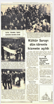 Günümüzde ustalıklı bir operasyonla dokunulmaz olması gerekirken, dokunulup geleceği meçhule terk edilmiş, Atatürk Kültür Merkezi’nin açılışı da çok zorlu gelişmeler içinde yaşanmış, 13 Nisan 1969’da açılışı bile tartışmalı, olaylı. Dönemin sokak tiyatrosu kültüründe önemli işlev yapmış Devrim İçin Hareket Tiyatrosu’nun eylemi de açılış içinde geniş fotoğraf kareleri ile yer almış. Bir bir dostları sevgiyle selamlıyorum..
