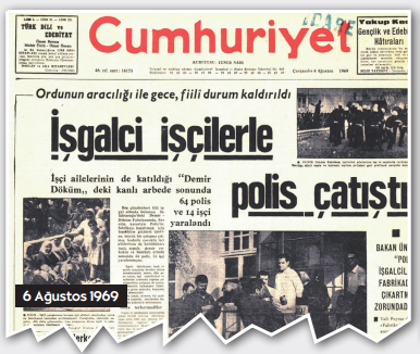 Eyüp, Kartal yoğunlaşması özeli bir yana, aynı gecekondu bölgelerinde yaşayanların göç, akrabalık ilişkileri içinde bütünleşmeleri öbür yana. İşin içine siyasi iktidarın siyaseti, polis şiddeti karıştırıldıkça, çatışmalar, can kayıplarını bile getiriyor. Dönemin valisi, sorumlu Emniyet görevlileri başrollerde, şiddetli direnen patronlar destekli çatışmacılıklar beslendikçe besleniyor. Nasılsa en çarpıcı işçi hakları savaşımı 1970’e kayacak. En önemli, anlamlı direnişten DemirDöküm’den ilk tanıklıkları paylaşmak gerek.