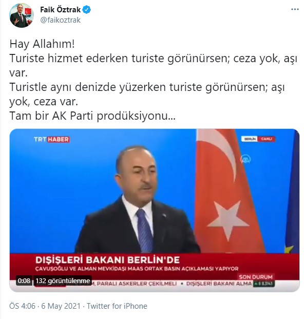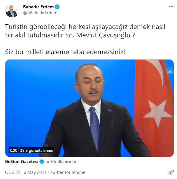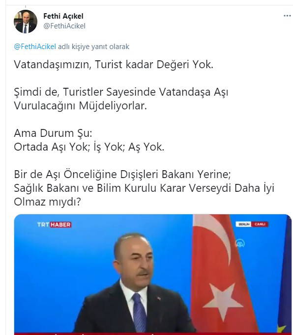 Çavşoğlu, “Turizm sezonuna güvenli bir şekilde girebilmek ve vatandaşlarımızın güvenliği için bazı tedbirler aldık. Otel ve restoran çalışanları, tur rehberleri, şoförler, havaalanında çalışanlar dahil, turistin görebileceği herkesi Mayıs sonuna kadar aşılayacağız” dedi.