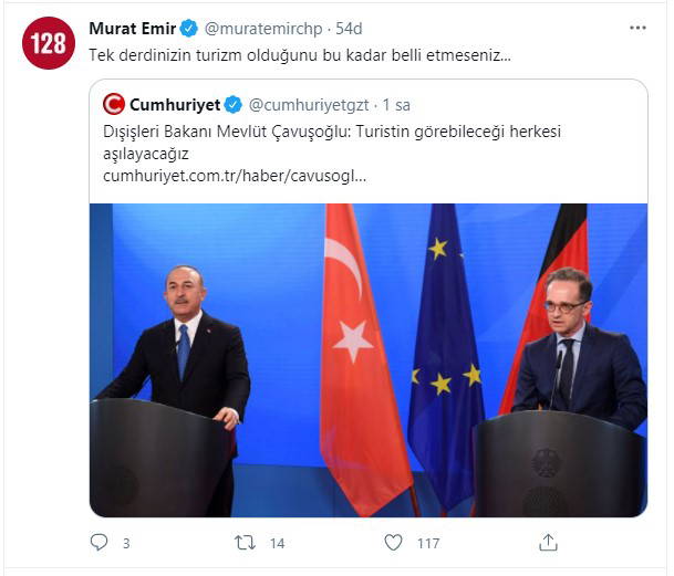 Dışişleri Bakanı Mevlüt Çavuşoğlu, Alman mevkidaşı Heiko Maas ile yaptığı ortak basın toplantısında, Türkiye’nin turizm sezonundan önce koronavirüs salgını konusunda güvenli hale getirileceğini ifade etti.