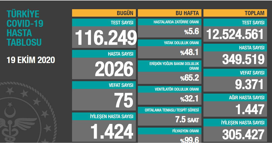 19 EKİM KORONAVİRÜS TABLOSUNUN DEĞİŞTİRİLMİŞ HALİ