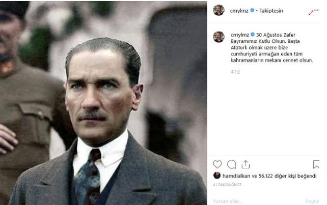 Sosyal medya hesabından bu tarz önemli günlerde çarpıcı paylaşımlar yapan Cem Yılmaz, bu yıl 97. sini kutladığımız 30 Ağustos Zafer’i için şu satırları yazdı: