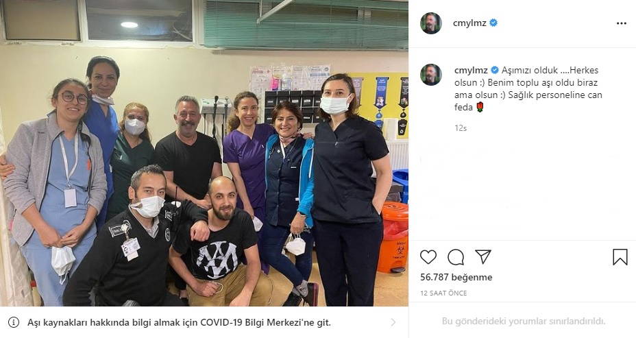 Ünlü komedyen Cem Yılmaz da aşısını yaptırdı. Yılmaz, aşı olduktan sonra sosyal medya hesabından bir fotoğrafla birlikte “Aşımızı olduk. Herkes olsun. Benim toplu aşı oldu biraz ama olsun. Sağlık personeline can feda” mesajını paylaştı.
