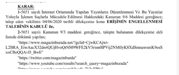 Twitter hesabından mahkeme kararını paylaşan Yılmaz, mahkeme heyeti tarafından erişim engelleme kararı verildiğini şu sözlerle takipçilerine duyurdu: