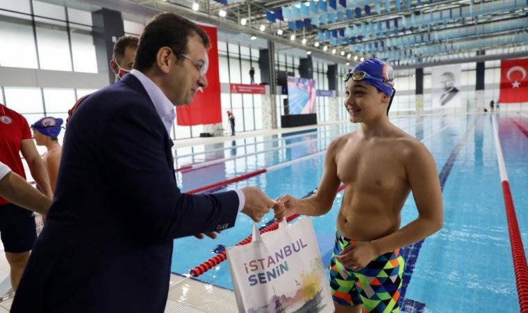 Konuşmasının ardından yüzme yarışının startını veren İmamoğlu, cimnastik gösterisini de izledi. Ekrem İmamoğlu, sporculara ayrıca hediye verdi.