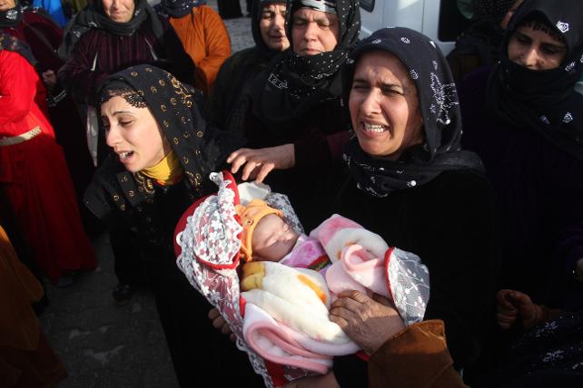 Cenaze töreninde Yasin Balandi'nin 20 gün önce doğum yapan eşi Adile Balandi, gözyaşlarını tutamadı. Eşinin bebeği Zehra'yı hiç görmediğini dile getiren Adile Balandi ağıtlar yaktı.