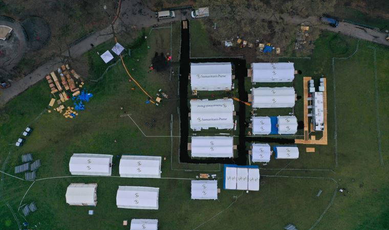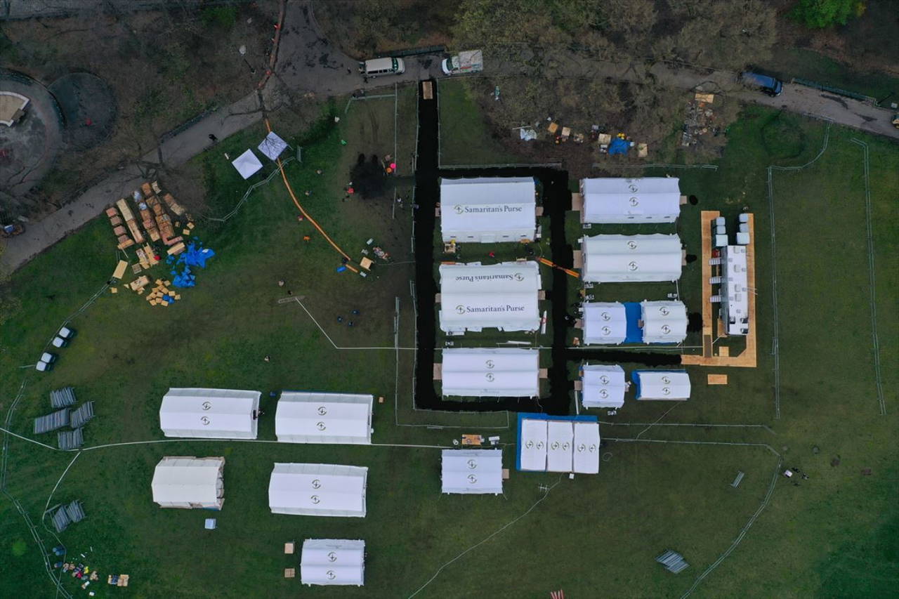 ABD’de yeni tip koronavirüs (Kovid-19) salgınının merkez noktası haline gelen New York şehrindeki dünyaca ünlü Central Park'ta koronavirüsle (Kovid-19) mücadele kapsamında ilk yardım hastanesi kuruldu.