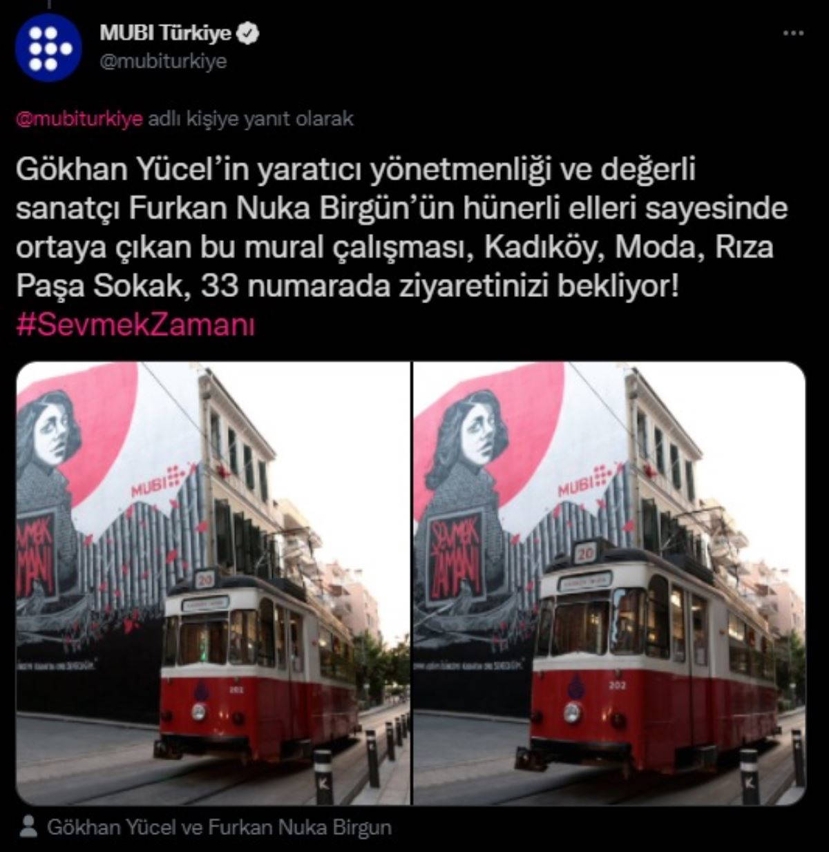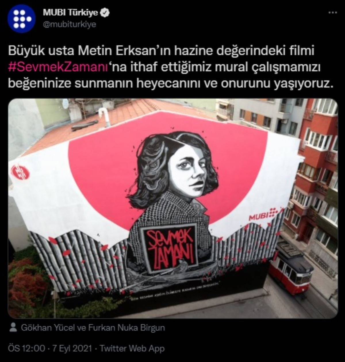 Mural çalışmanın duyurusu, MUBI Türkiye'nin Twitter hesabından da yapıldı.