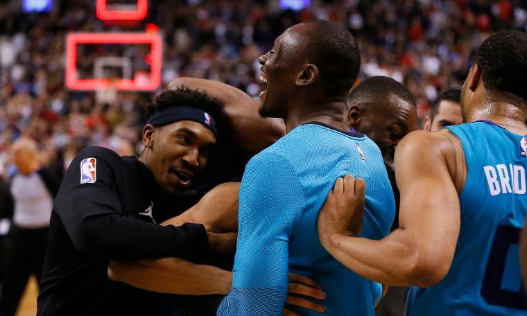 NBA'e 8 maçla devam edildi. Doğu Konferansı 2'ncisi Toronto Raptors'ın play-off potasına girme mücadelesi veren Charlotte Hornets'i ağırladığı karşılaşma, sahalarda ender görülen bir olaya sahne oldu.