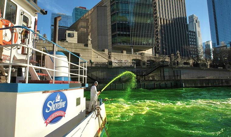 ABD’nin Illinois eyaletinde bulunan Chicago şehrinde 17 Mart’ta kutlanan Aziz Patrick Günü için Chicago Nehri, yonca yeşili rengi aldı.