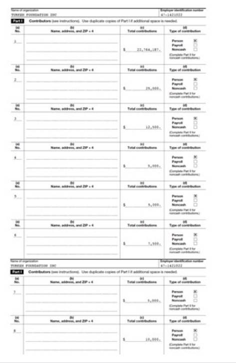 * Eğer bu iddialar doğruysa, neden daha önce bu bağışın miktarı 8 milyon dolar olarak açıklandı? Eğer doğru değilse, ABD Vergi Dairesi kayıtlarında gözükmeyen 8 milyon dolar nerede?