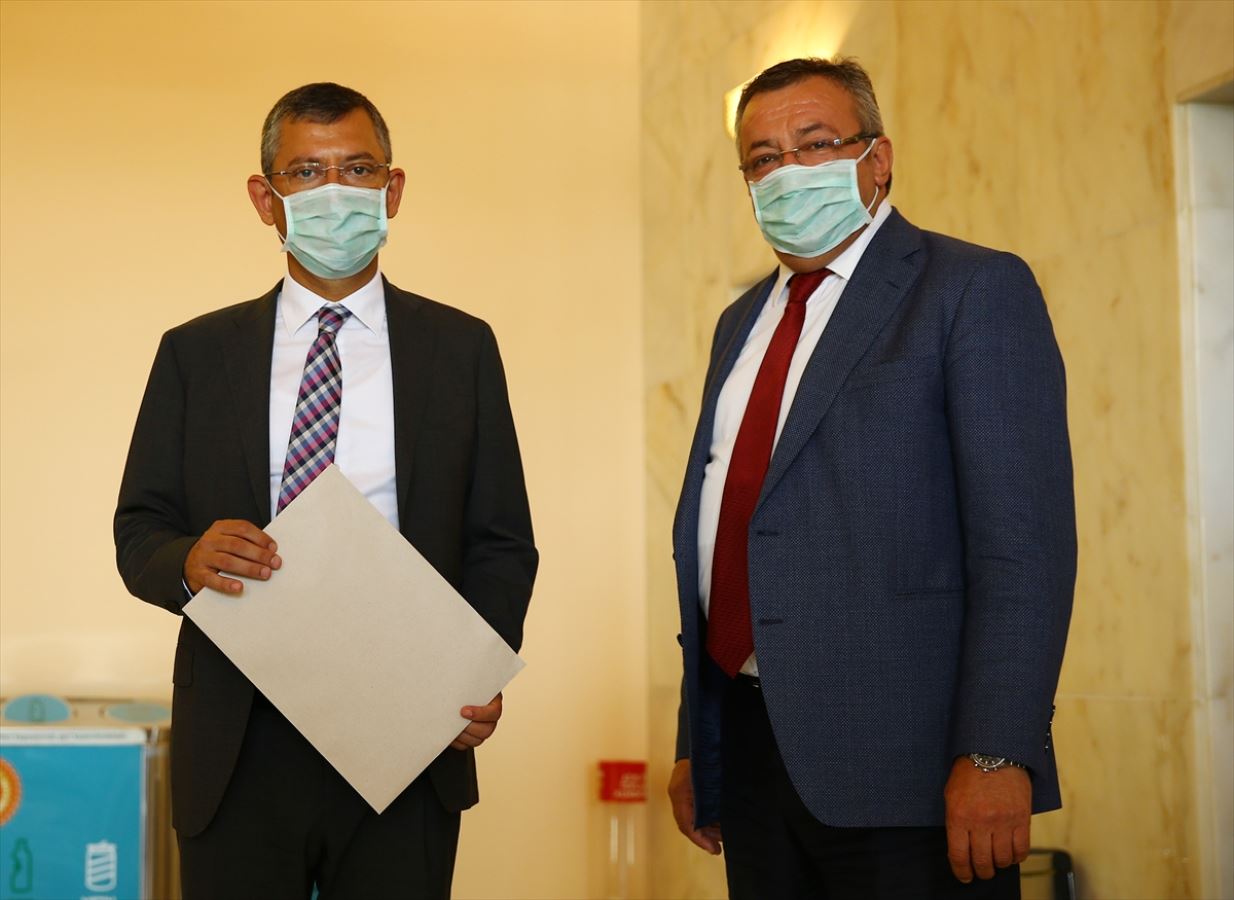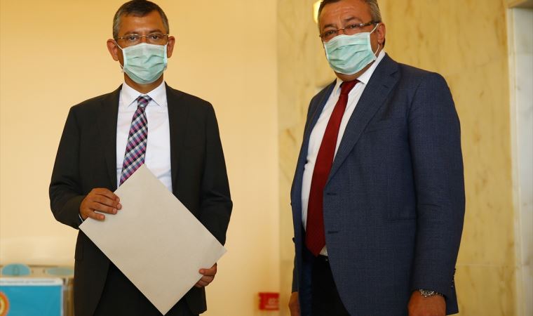 CHP Grup Başkanvekilleri Engin Altay ve Özgür Özel, Koç'un Meclis Başkanlığı adaylığına ilişkin dilekçeyi Meclis Genel Sekreterliğine sundu.