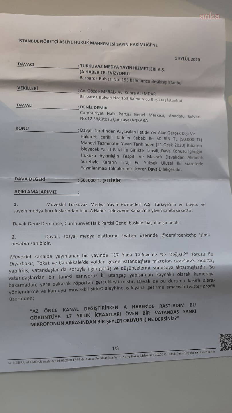 Kendisine açılan davayı yine Twitter hesabından duyuran CHP’li Demir, şu ifadeleri kullandı: