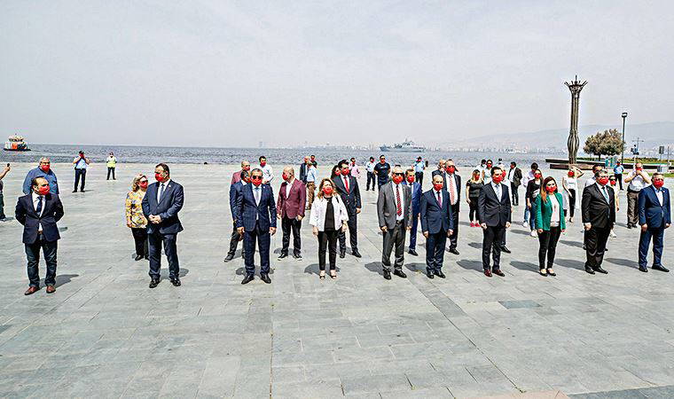 Güvenli mesafe gözetilerek yapılan törenin sonunda katılımcılar Atatürk anıtına karanfil bıraktılar. Törene CHP İzmir Milletvekillerinden Atila Sertel, Tacettin Bayır, Kamil Okyay Sındır, Sevda Erdan Kılıç, Kani Beko, Murat Bakan, Mahir Polat, Bedri Serter, Ednan Arslan, Özcan Purçu, Konak Belediye Başkanı Abdül Batur, CHP Konak İlçe Başkanı Çağrı Gruşçu ile Büyükşehir Belediyesi Genel Sekreteri Buğra Gökçe de katıldı.