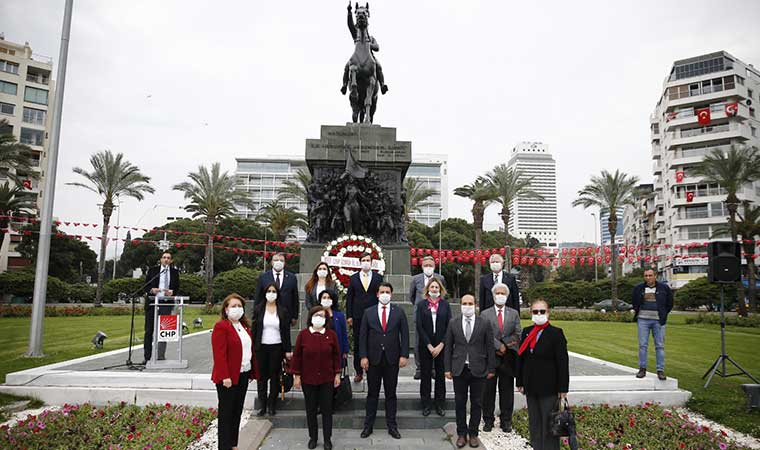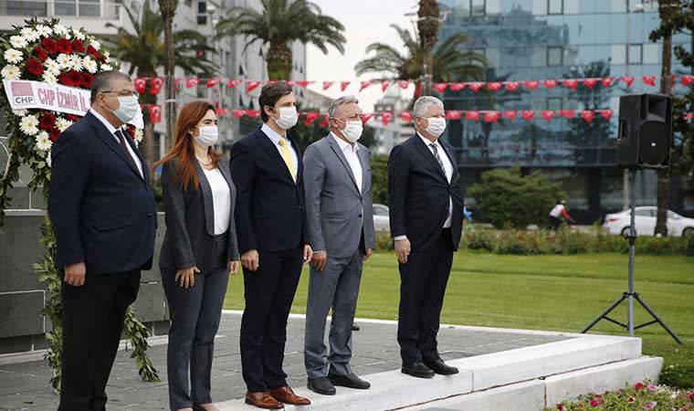 CHP İzmir il başkanlığının düzenlediği törende, sosyal mesafe ve maske kullanım kurallarına uyulurken, tören 100. Yılın anısına çekilen fotoğrafların ardından sona erdi.
