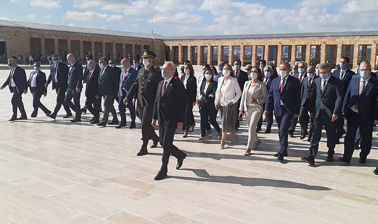 CHP heyeti 97. kuruluş yıldönümü nedeniyle Anıtkabir’i ziyaret etti. Heyet, Anıtkabir’de Aslanlı Yol’dan yürüyerek, Gazi Mustafa Kemal Atatürk’ün mozolesine geldi. Kılıçdaroğlu’nun kırmızı ve beyaz karanfillerden oluşan çelengi mozoleye bırakmasının ardından saygı duruşunda bulunuldu. Daha sonra Misak-ı Milli Kulesi’ne geçen Kılıçdaroğlu, Anıtkabir Özel Defteri’ne şunları yazdı: