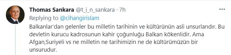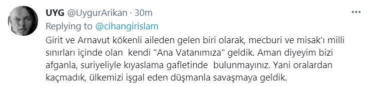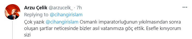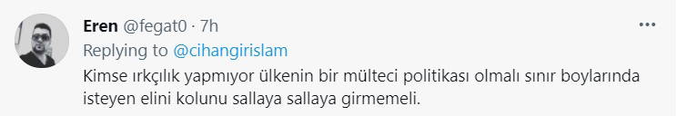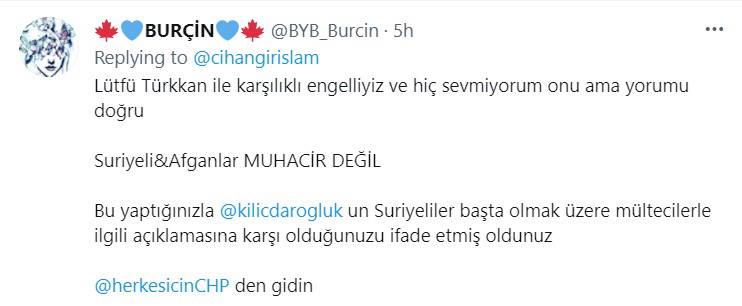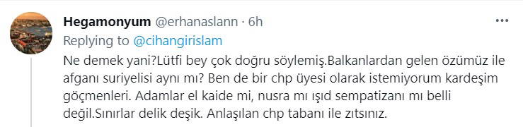 İslam'ın sözleri kullanıcıların tepkisiyle karşılaştı. I. Dünya Savaşı sonrası dağılan Osmanlı İmparatorluğu'ndan, anlaşmalar yoluyla yeni kurulan Türkiye Cumhuriyeti'ne göç eden vatandaşlarımız ile Suriye ve Afganistan'daki savaşlardan kaçarak Türkiye'ye sığınan göçmenlerin kıyaslanamayacağını savunan kullanıcılar tepkilerini, CHP Genel Başkanı Kemal Kılıçdaroğlu'nu da etiketleyerek dile getirdi.