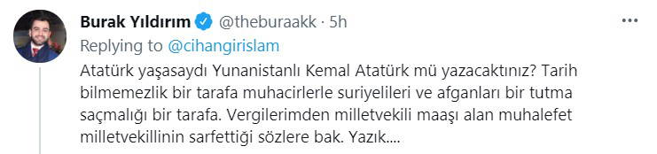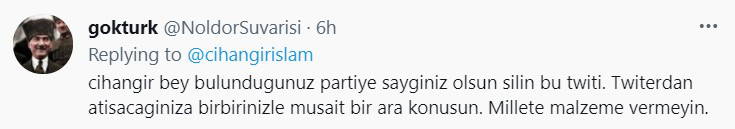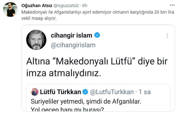 CHP Milletvekili Cihangir İslam da Türkkan'ın iletisini alıntılayarak, "Altına “Makedonyalı Lütfü” diye bir imza atmalıydınız" dedi.