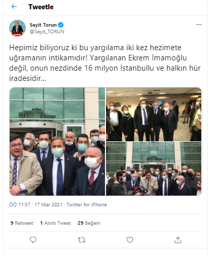 Yargılanan Ekrem İmamoğlu değil, onun nezdinde 16 milyon İstanbullu ve halkın hür iradesidir...