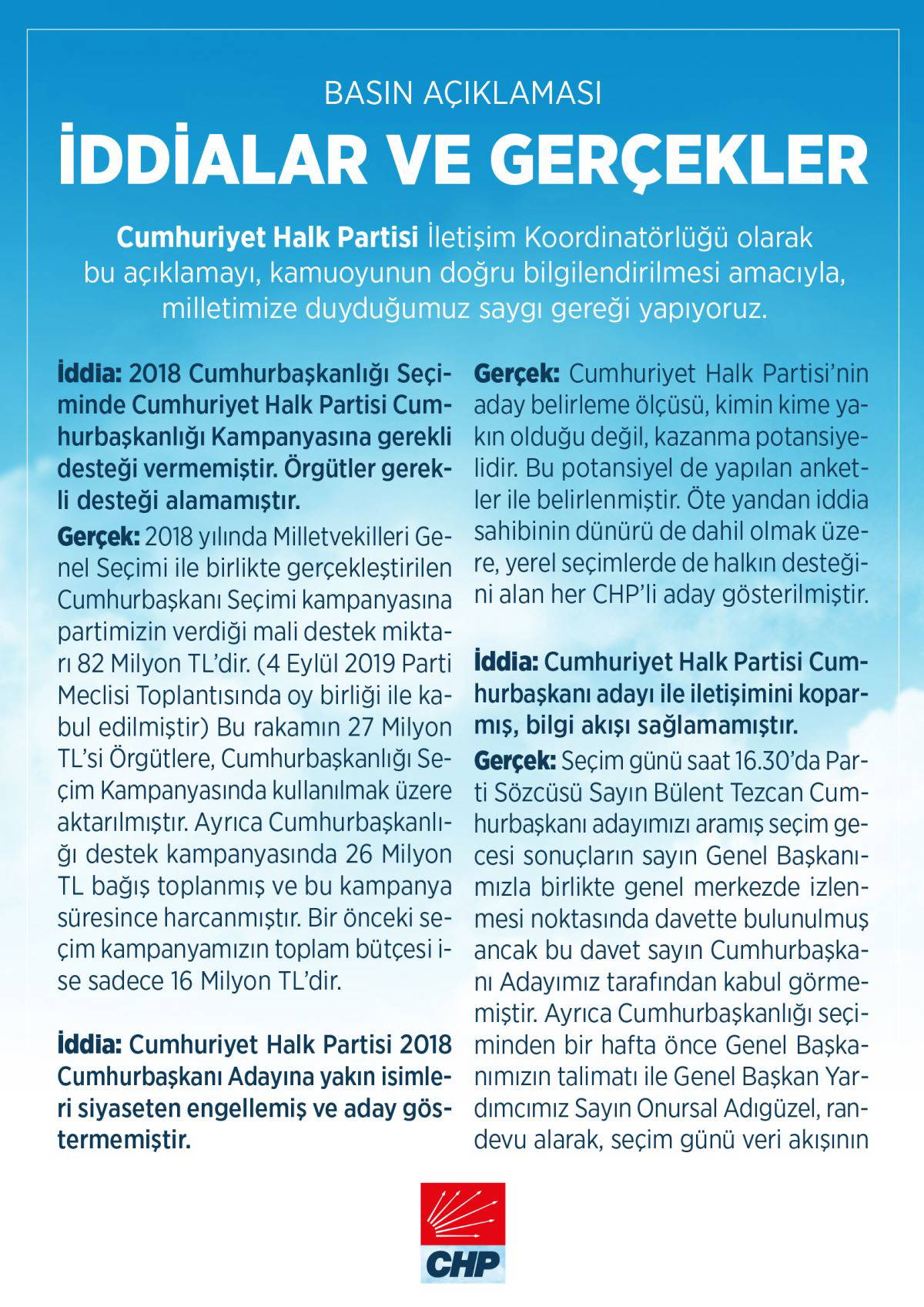 İddia: 2018 Cumhurbaşkanlığı Seçiminde Cumhuriyet Halk Partisi Cumhurbaşkanlığı Kampanyasına gerekli desteği vermemiştir. Örgütler gerekli desteği alamamıştır.