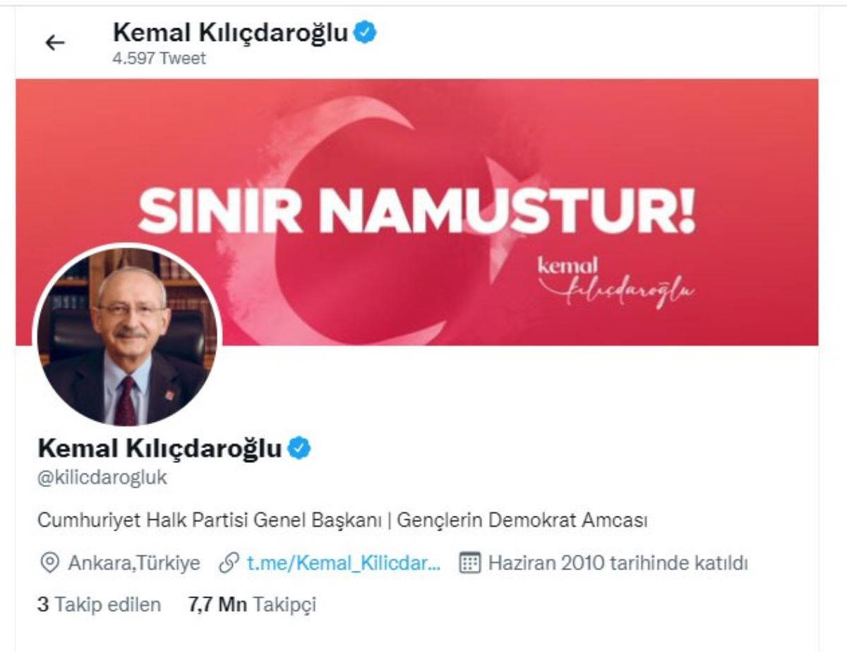 Öte yandan CHP lideri Kemal Kılıçdaroğlu’nun sosyal medya profilindeki kapak fotoğrafı “Sınır namustur” ifadesinin yazılı olduğu görselle değiştirildi.