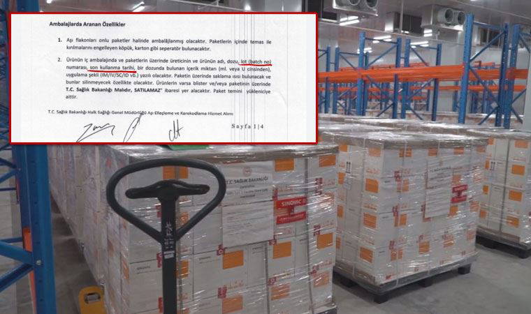 Çin aşısının yeniden paketlenmesinde, üretildiği ilk yerde yazılması gereken, son kullanım tarihi, üretim numarası ve sevkiyat numarası gibi bilgilerin neden Türkiye'de üretilmiş gibi tekrar girdiğini soran CHP'li Adıgüzel, konuyla ilgili belgenin şu bölümüne dikkat çekti: