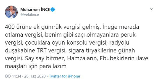 Twitter hesabından paylaşım yapan CHP'li Muharrem İnce, şu ifadeleri kullandı: