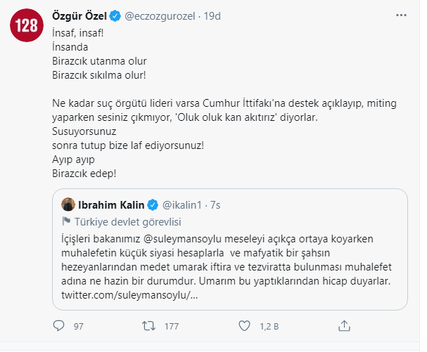 Organize suç örgütü lideri Sedat Peker'in, İçişleri Bakanı Süleyman Soylu ile ilgili iddiaları tartışılırken AKP tarafından muhalefete yönelik suçlamalara CHP Grup Başkanvekili Özgür Özel'den tepki gösterildi.
