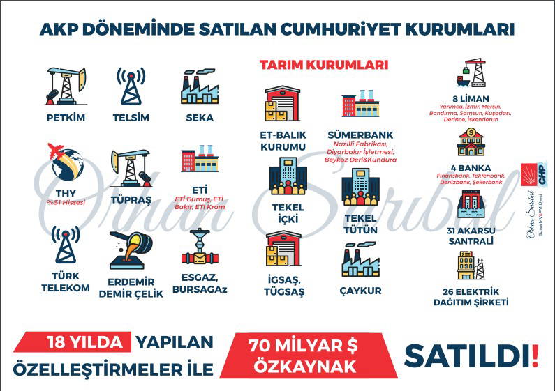 "Haraç-mezat satışı yapılan ve özelleştirme başlığı ile hazineye gelir elde ettiğini söyleyen AKP, 70 Milyar $ lık özsermayeyi yok etmiştir."