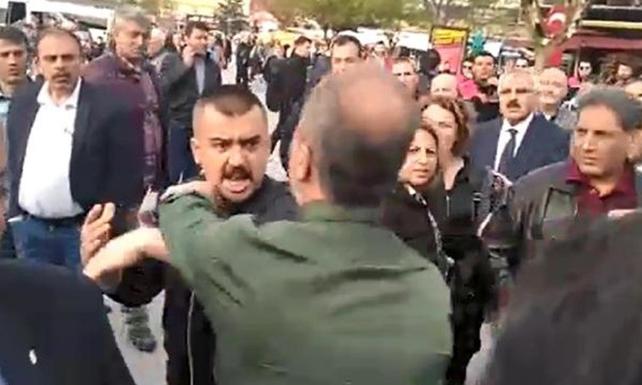 Bu sırada Musa Yılmaz’ın yanına gelen kişi “Hangisi soysuz?” diye sordu. Musa Yılmaz, “Müsaade eder misin?” derken, müdahale bulunan kişi ise, “Etmiyorum” diyerek karşılık verdi.