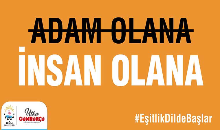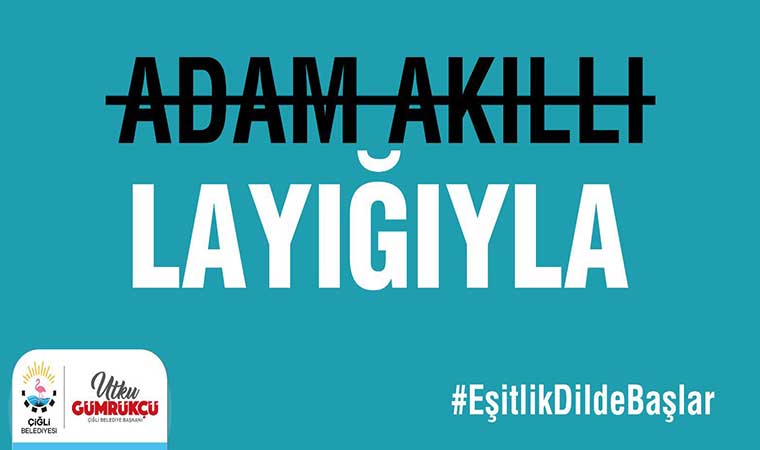 Toplumsal cinsiyet kalıp yargılarını dönüştürmeyi amaçlayan Çiğli Belediye Başkanı Utku Gümrükçü, afişleri resmi twitter hesabından paylaşarak, "Eşitlik dilde başlar" ifadelerini kullandı.