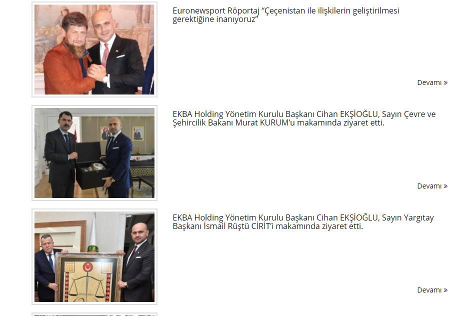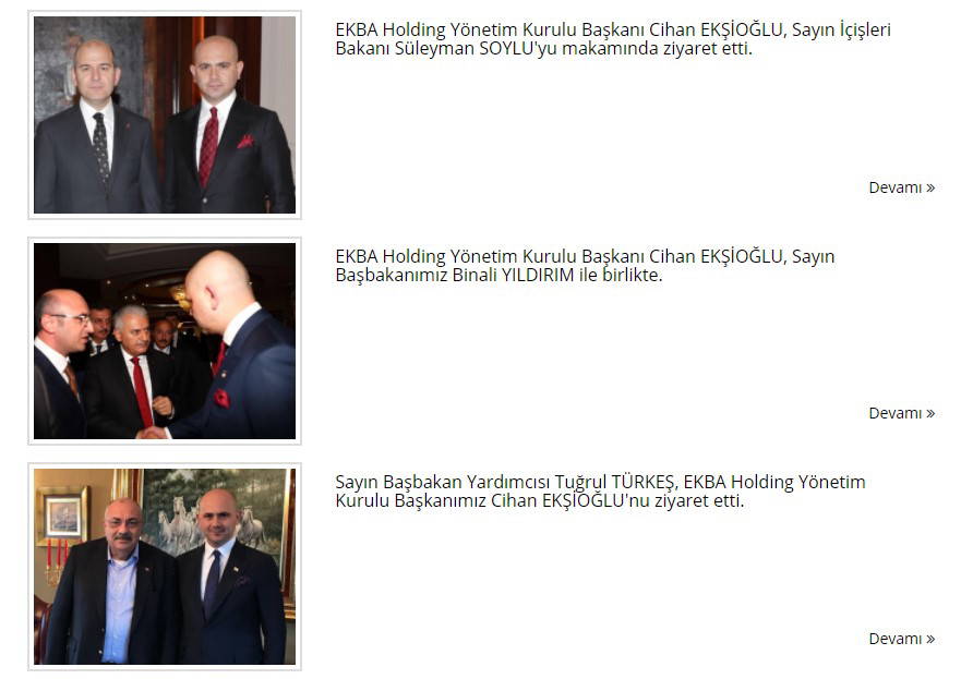 Ekşioğlu'nun İçişleri Bakanı Süleyman Soylu, Çevre ve Şehircilik Bakanı Murat Kurum, Yargutay Başkanı İsmail Rüştü Cirit ve Binali Yıldırım gibi isimleri makamında ziyaret ettiği görüldü. Ziyaretlere ilişkin fotoğraflar holdingin internet sitesinde paylaşıldı.